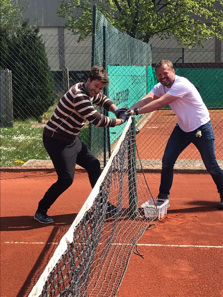 Heute hat unser Team die Netzte aufgehängt und die Bänke auf die Plätze gebracht.